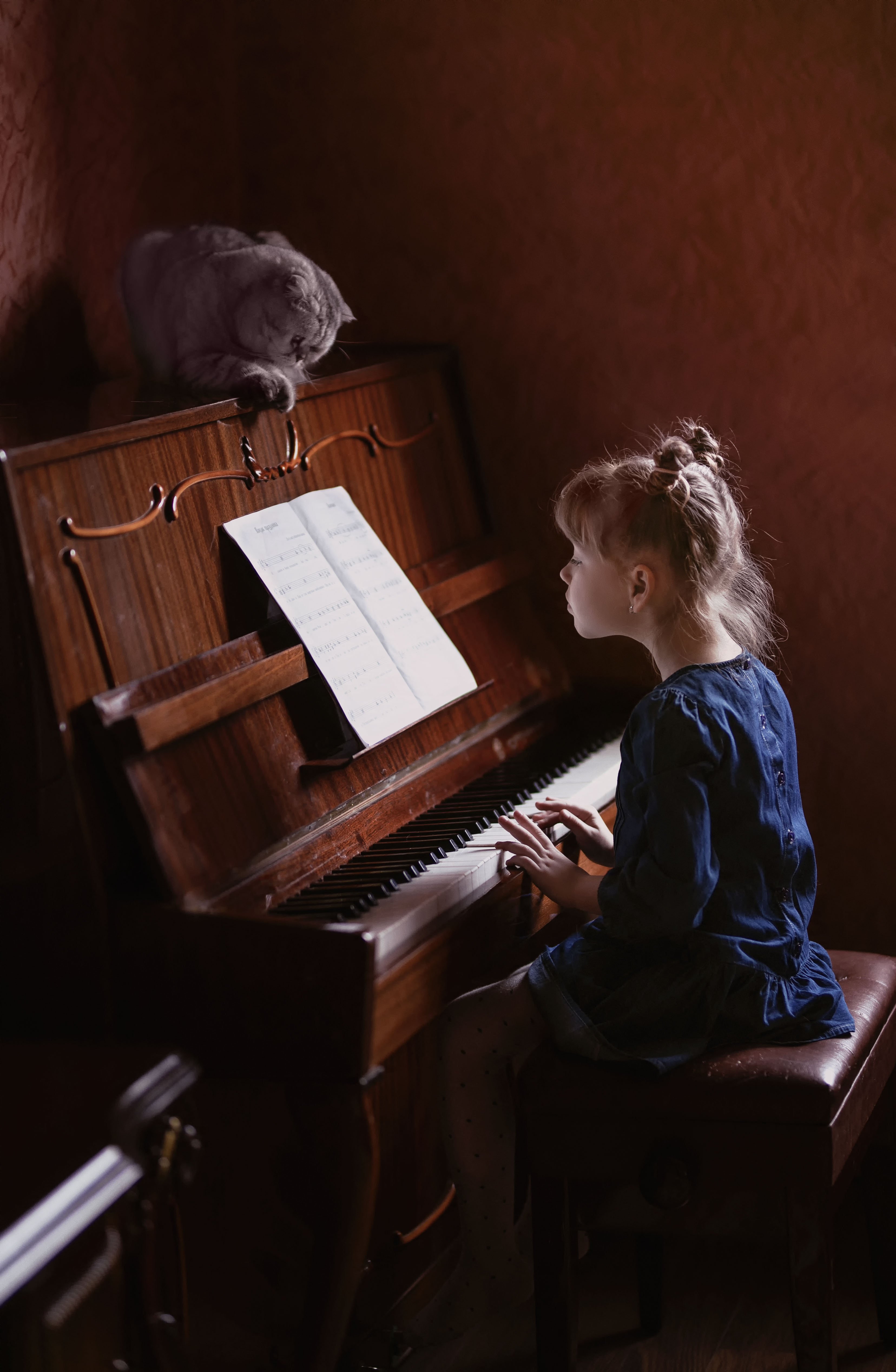 девочка кот пианино дуэт детство музыканты помощник урок занятие друзья, Марина Еленчук