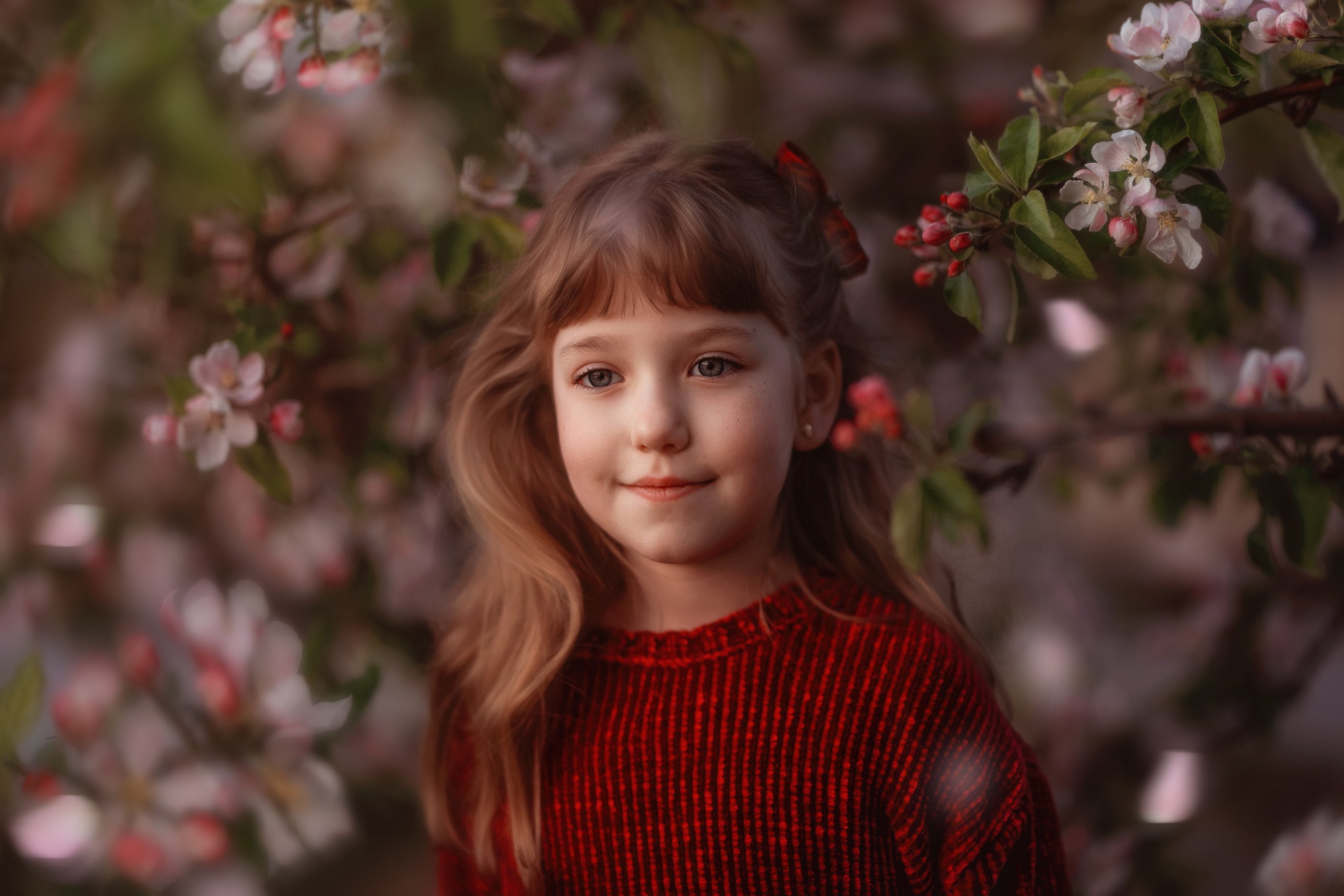 девочка, , , детство, яблоня, цвет, весна, вечер, ребенок, цветы, закат, Марина Еленчук