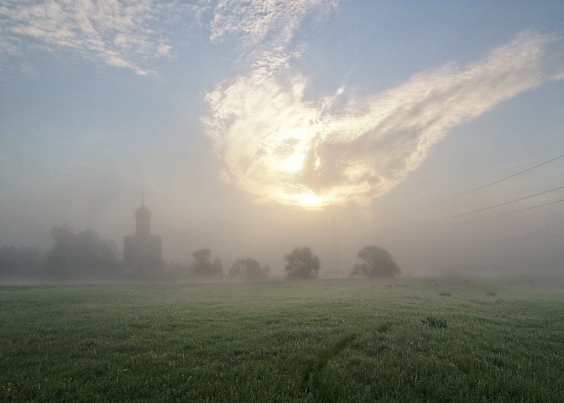 туман, нерли, на, покрова, восход, свет, облако, солнце, лэп, Марина Брыдня