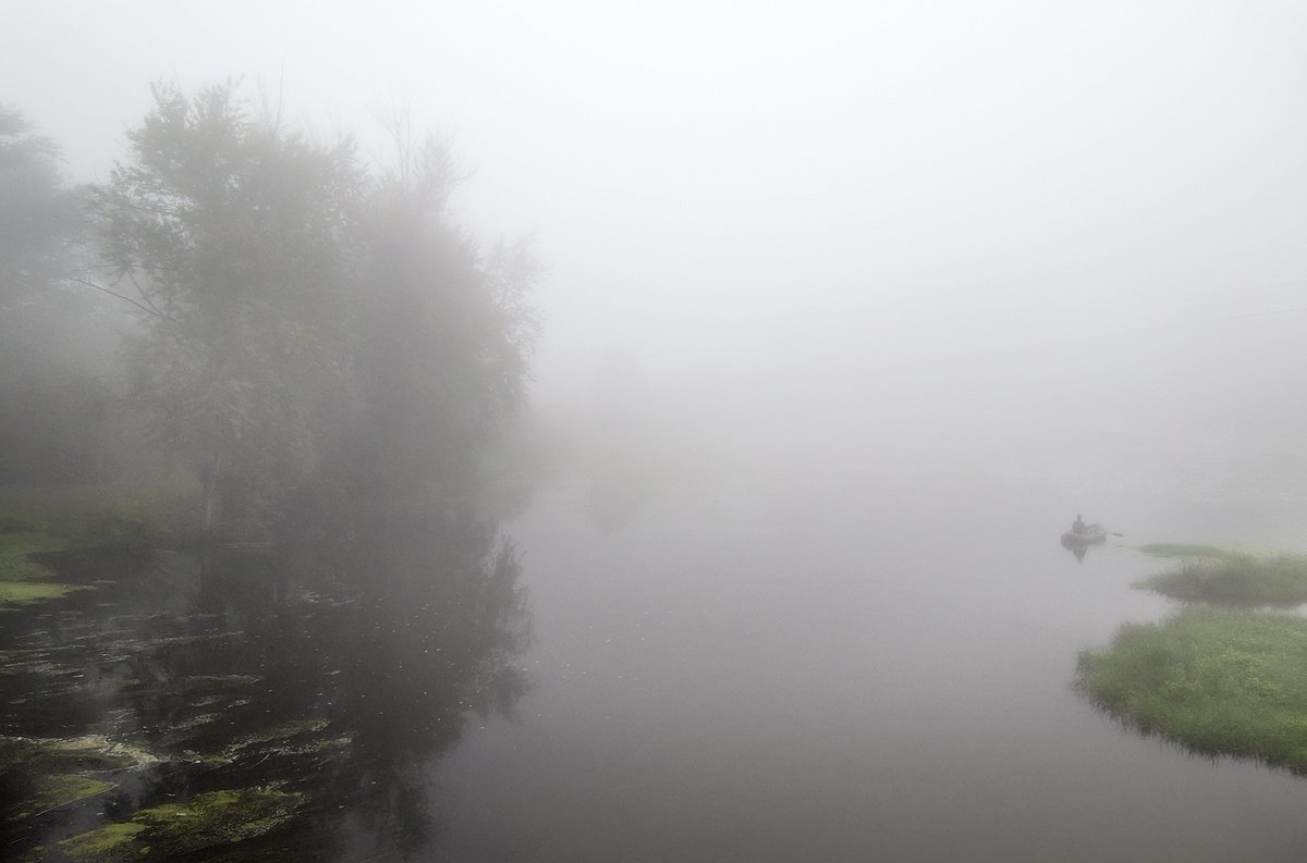 рыбак, река, лодка, туман, утро, Марина Брыдня