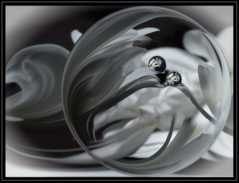 капли, вода, хризантемы, отражение, Марина Брыдня