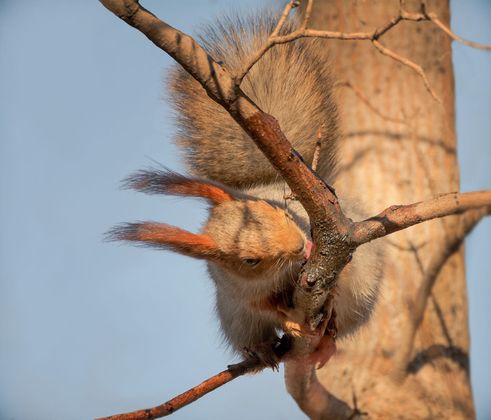 Часто езжу в парк снимать белочек, орешки берут с рук и на руке сидят, ни разу не видела как они лакомятся берёзовым соком).ЗдОрово! Удачный момент поймали!