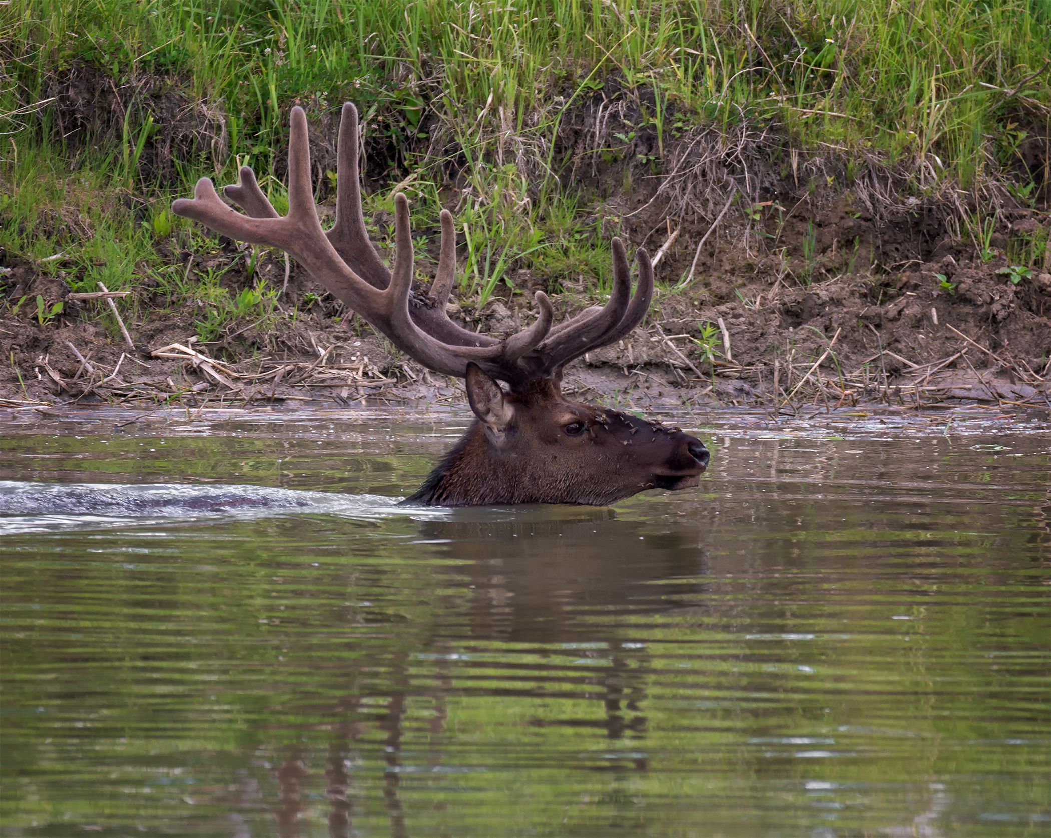 Да, жара спАла! Ночью было около 7 градусов, сейчас 13,.. в такую погоду насекомых мало, а в жару, когда слепней много, смыть с морды у них не получается, вот у молодых (с маленькими рожками) .. лучше выходит!