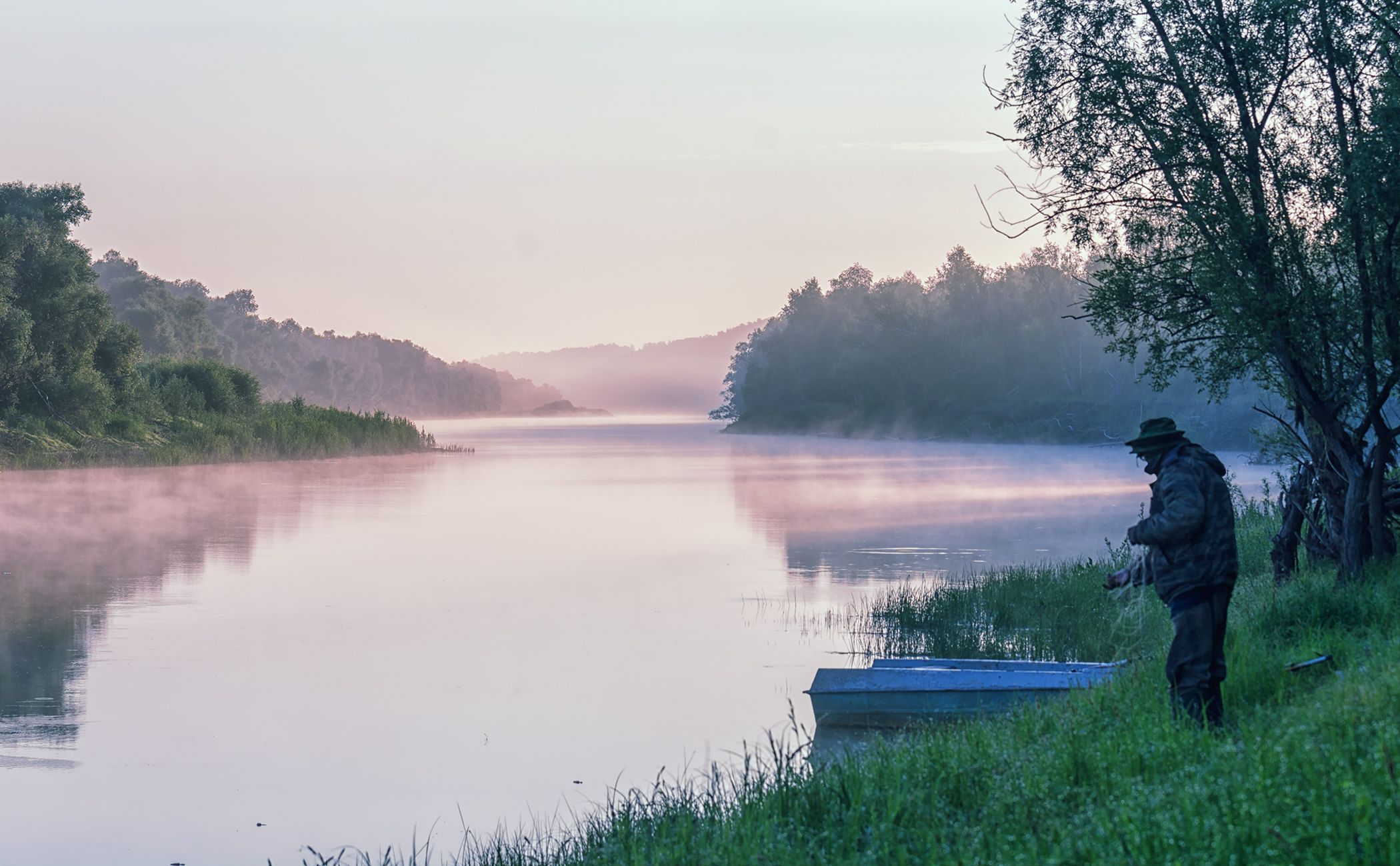 утро, рыбалка, лето, река, туман, пейзаж,, Марина Мочалова