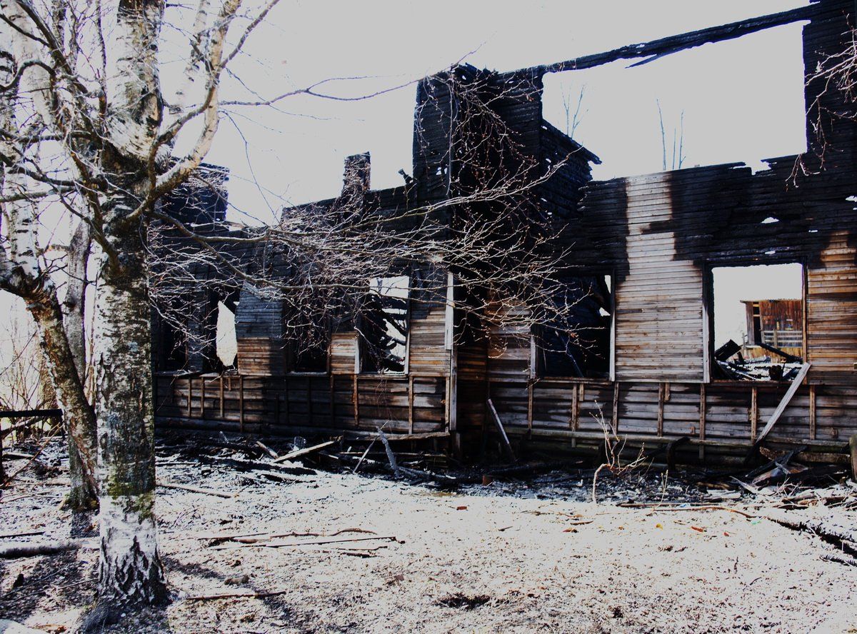Вот что осталось от моего бывшего двухэтажного дома(здесь одна часть дома).Несколько раз горел,отстаивали. В этот раз сгорел почти полностью.
