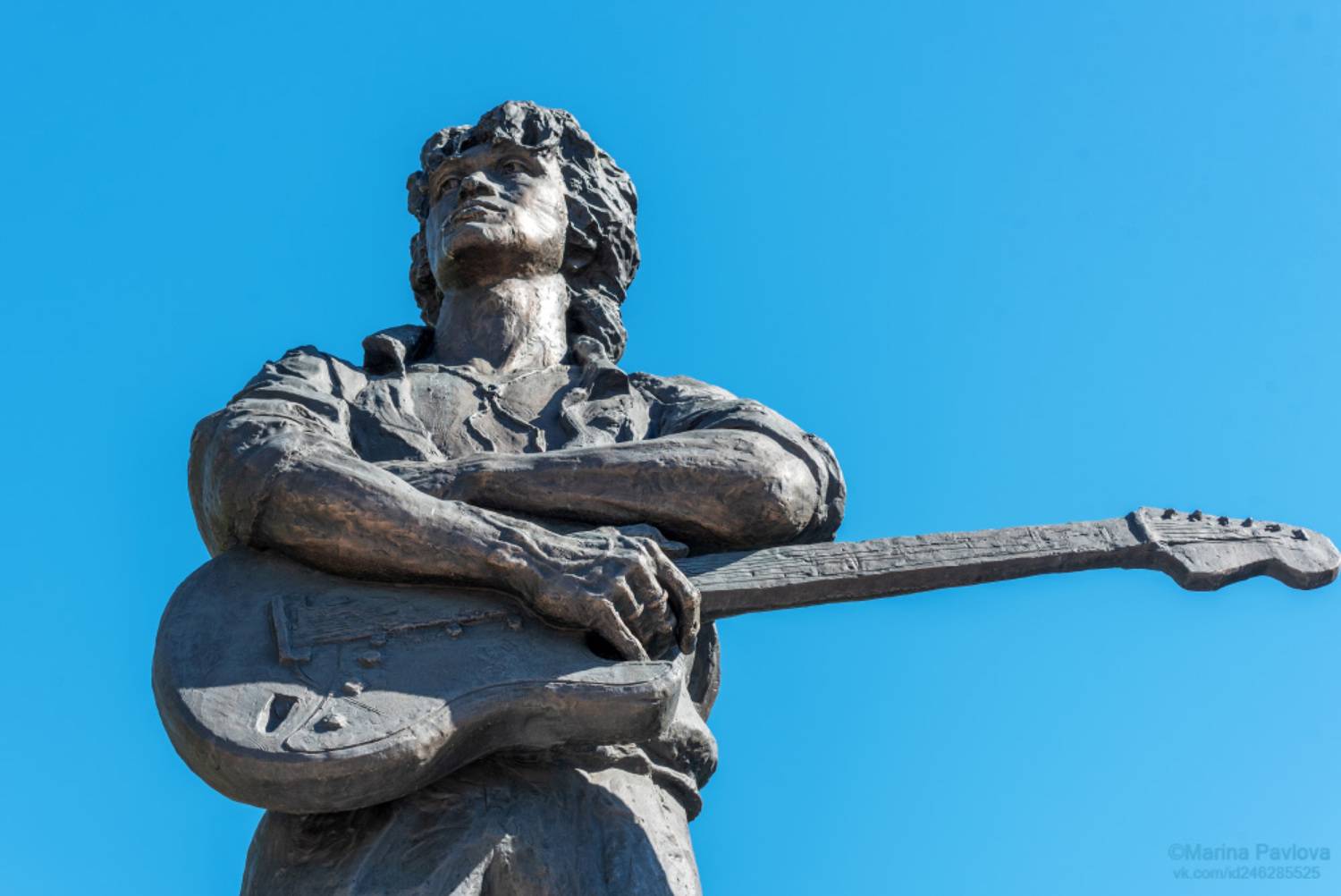 Авторы скульптуры — выпускник петербургской Академии художеств Матвей Макушкин и архитектор Нестор Энгельке. Образ выбран по пожеланиям родителей и фанатов музыканта. На постаменте строки из песни "Группа крови"-"...Есть чем платить, но я не хочу победы любой ценой".