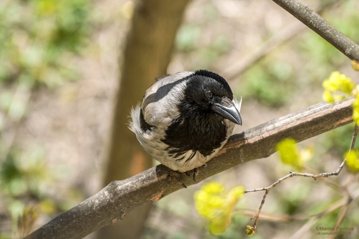 Одна из новых ворон, которая стала прилетать на дерево напротив моего окна. Думаю что придётся назвать её ворона-воровка.