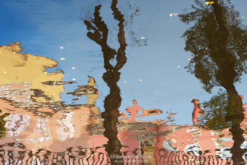 Акваабстракция. Абстракция. Осенние отражения набережной канала Грибоедова. Санкт-Петербург сентябрь 2018г. Интересное дерево, меняющее образы от движения ветра, волн и солнца, к сожалению спили, как и многие деревья вдоль канала.