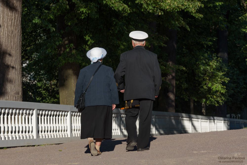 Вечерняя прогулка в Нижнем парке Петергофа в день ВМФ России.