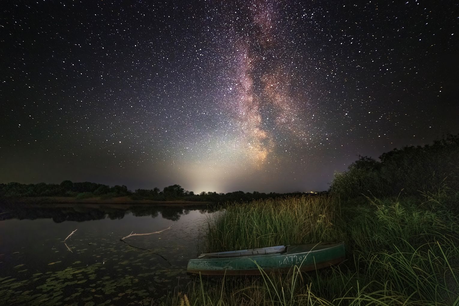 звезды, млечный_путь, ночь, лодка,река, Марина Мурашова