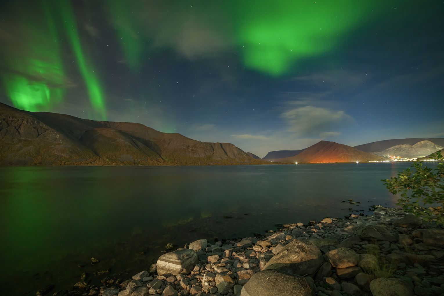 Моё путешествие в Хибины. День третий. Вернее ночь. В этот день мы с моей коллегой Наталией поднялись на гору Айкуайвенчорр, я вроде много поснимала, но разбирая фото я не отметила для себя каких то интересных кадров, разве что немного макро. Поэтому этот день остался без фотокарточек. Но ночью ожидал приятный сюрприз. Выйдя на улицу и посмотрев на небо - я увидела - что сияет северное сияние, хотя по прогнозам его особо не обещали. Ночевали мы в Кировске, а над городом желания фотографировать сияние не было. Моя спутница решила остаться дома, а я среди ночи побежала к озеру Большой Вудьявр, которое минутах в 15ти ходьбы от Кировска. Надо признать, что ночью немного неуютно было топать в одиночестве среди темных улиц и гаражей (время было за полночь). Но ничто не остановит фотографа в погоне за хорошим кадром! Пока шла - сияло очень красиво! Переживала, что пока дойду- сиять перестанет. Но я успела! Поснимала изумрудную красоту. Несмотря на яркую луну - сияние хорошо было видно глазами - оно переливалось и завивалось в спиральки. Это зрелище не возможно разлюбить! Посияло, правда не долго - нашли зловредные тучки и пришлось идти домой. Но я осталась довольна - несколько кадров всё же удалось поймать P.S. Некоторые фото сделаны с помощью панорамы, так как сияние не влезало полностью в кадр