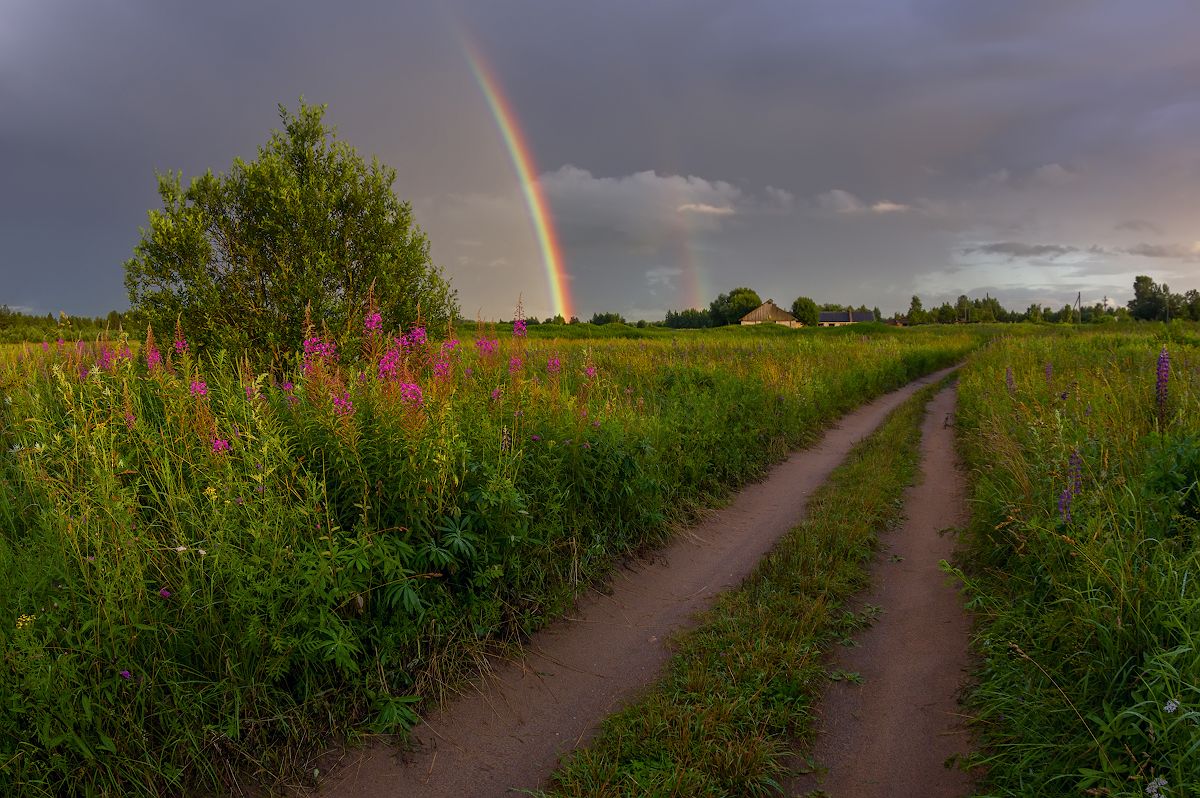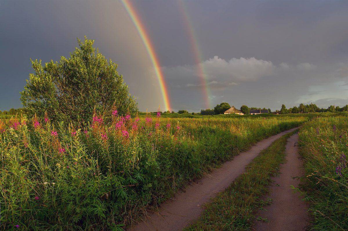 Прошел маленький дождик, выглянуло солнышко и появилась радуга! Но она, к сожалению, быстро растаяла, поэтому удалось заснять только деревенскую дорожку ;-)