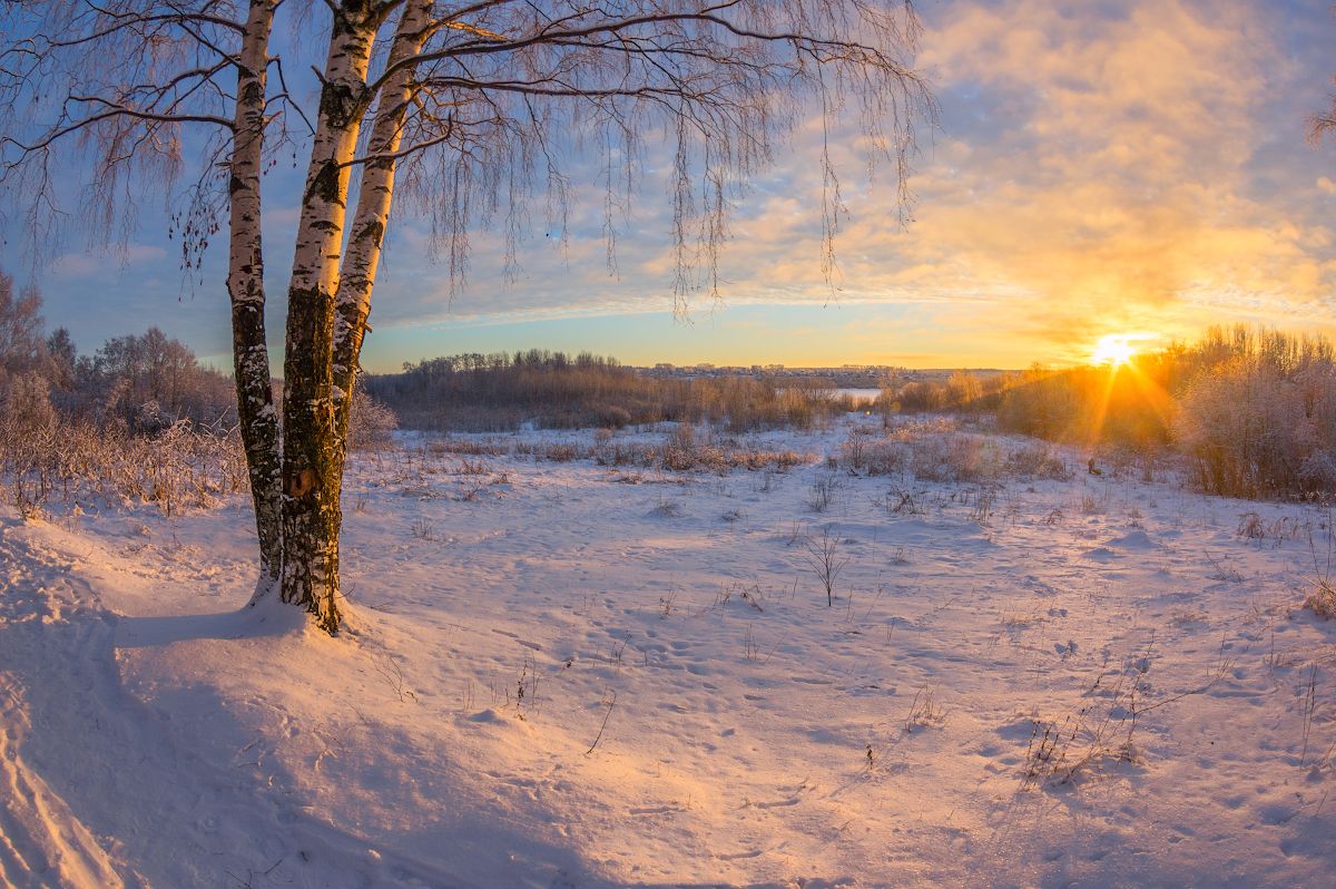 снег иней солнце зима декабрь