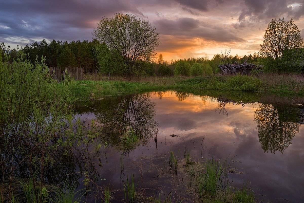 прудмостиквеснавечерзакатдеревня