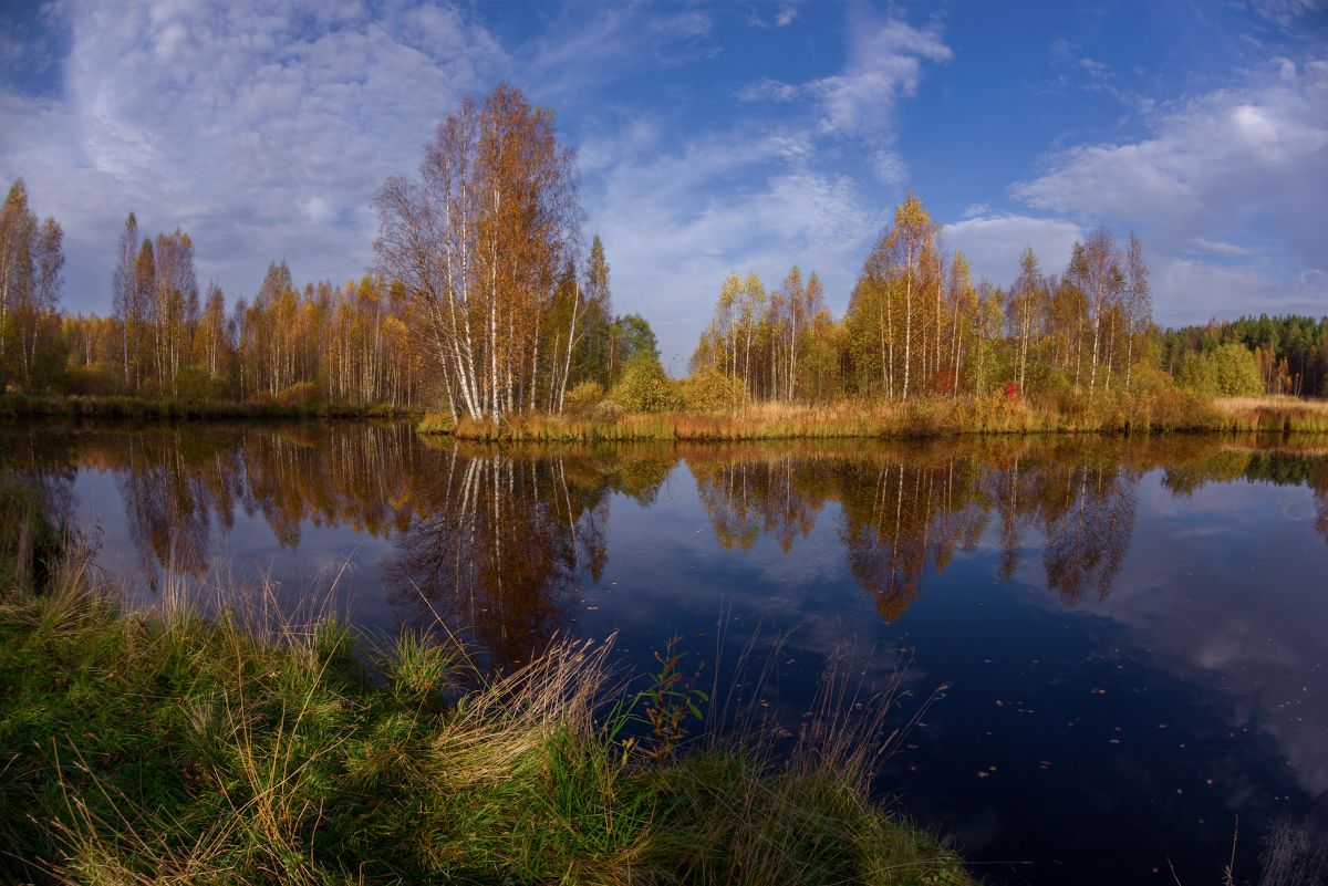 Тихая осень на маленькой речке. река Уломка, Вологодская область