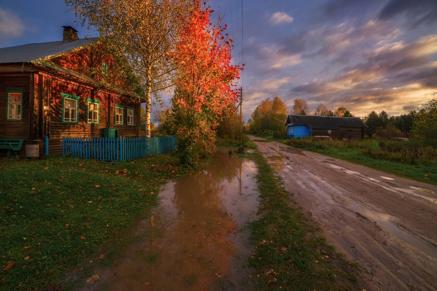 лужидеревнядомосеньдождь