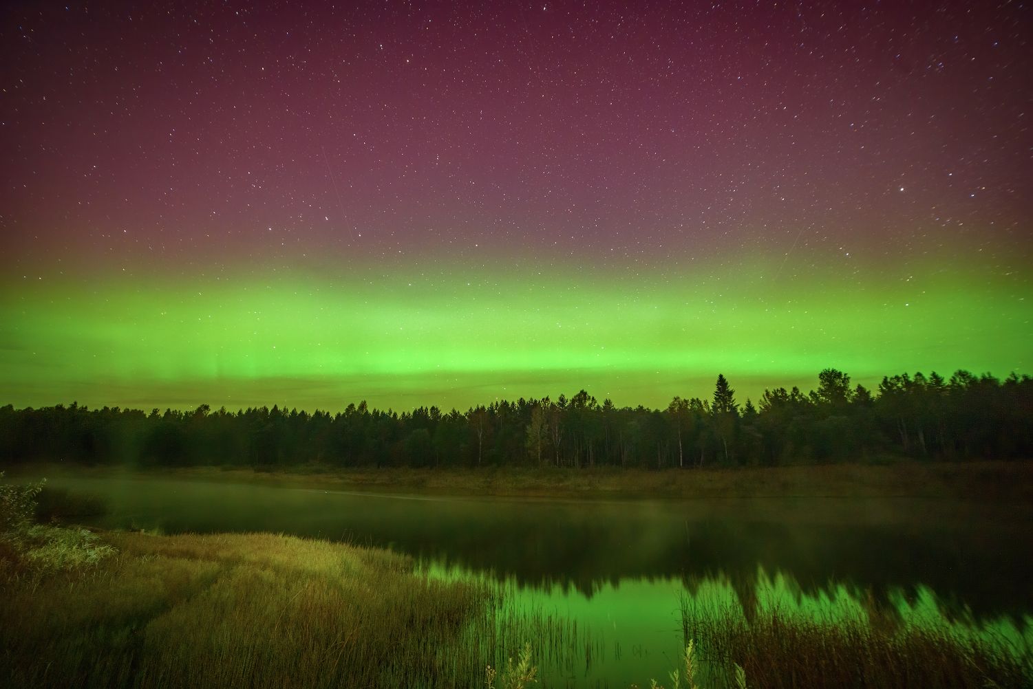 Северное сияние над рекой Молога, Ижина 12, 18. 09.23. Вологодская область. Большая удача поймать сияние в наших широтах - и вот, наконец это случилось - сияние показало себя во всей красе!