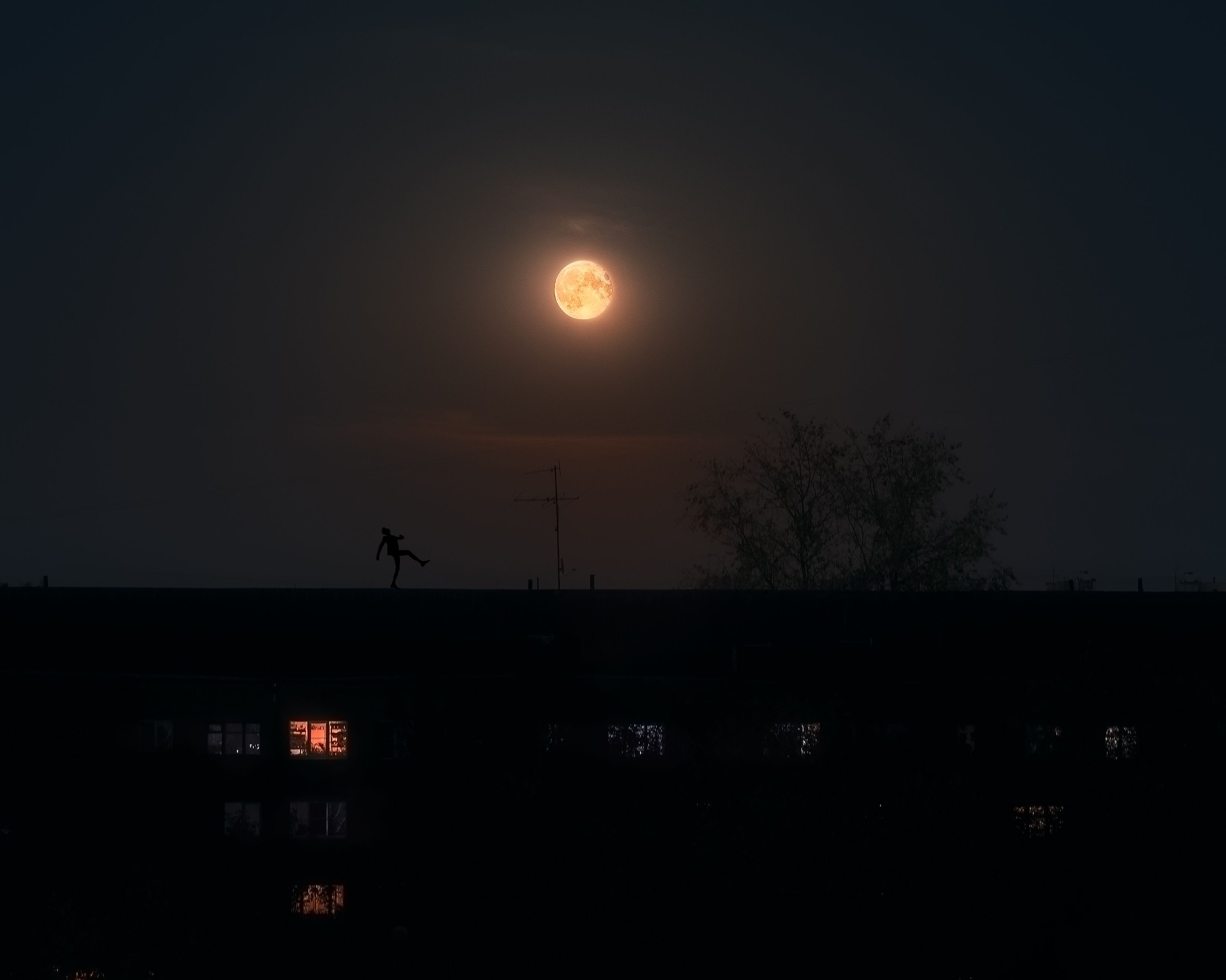 луна, полнолуние, город, крыши, прогулка под луной, Мартыненко Дмитрий
