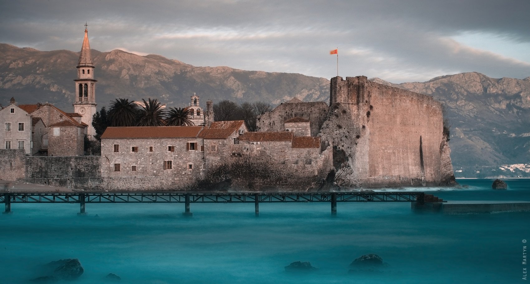 черногория, будва, старый, город, море, закат, выдержка, Alexander Martynov