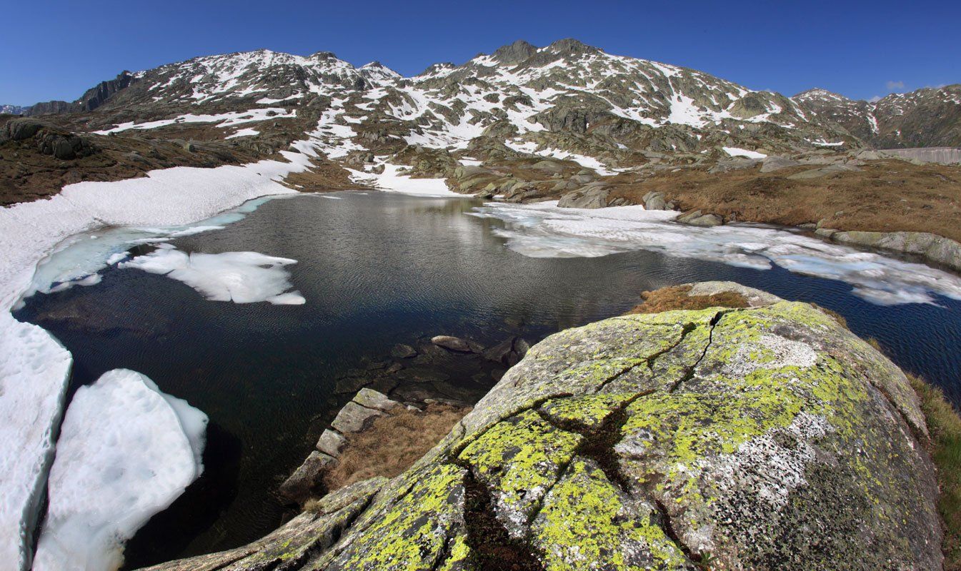 Сен-Готард...самый важный горный перевал Швейцарских Альп, причисляется к Лепонтинским Альпам, тянется с запада-юго-запада на восток-северо-восток по границе кантонов Вале, Ури, Граубюндена и Тичино; длина его 32-48 км, ширина 10-12 км, площадь около 440 кв. км, высота 2 106 м; южный склон его крутой, северный представляет отлогий скат.