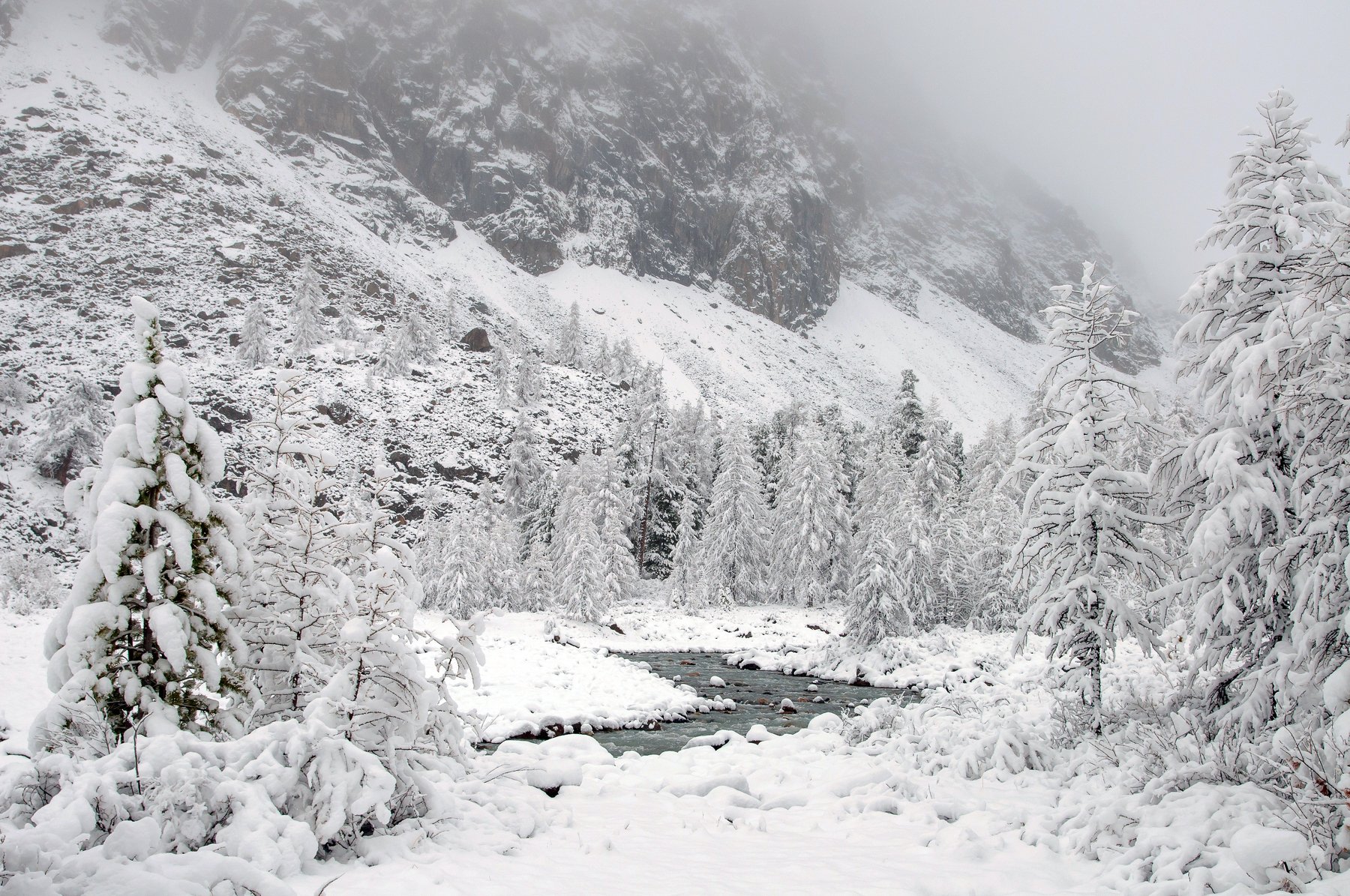 Актру, Весна, Весна в горах, Горный алтай, Горы, Снег, Туман, Максим Блинов