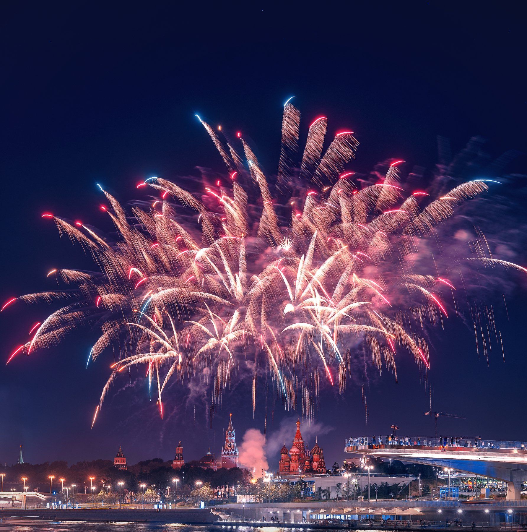 ночь, салют, кремль, москва, зарядье, мост, парящий мост, Анастасия Мазурева