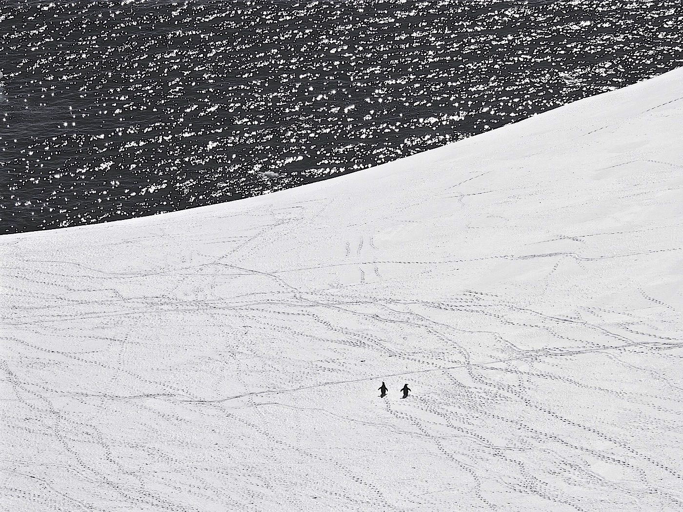 Пингвины озабочены продолжением своего рода.Вот и лезут эти удивительные создания природы на скалы,