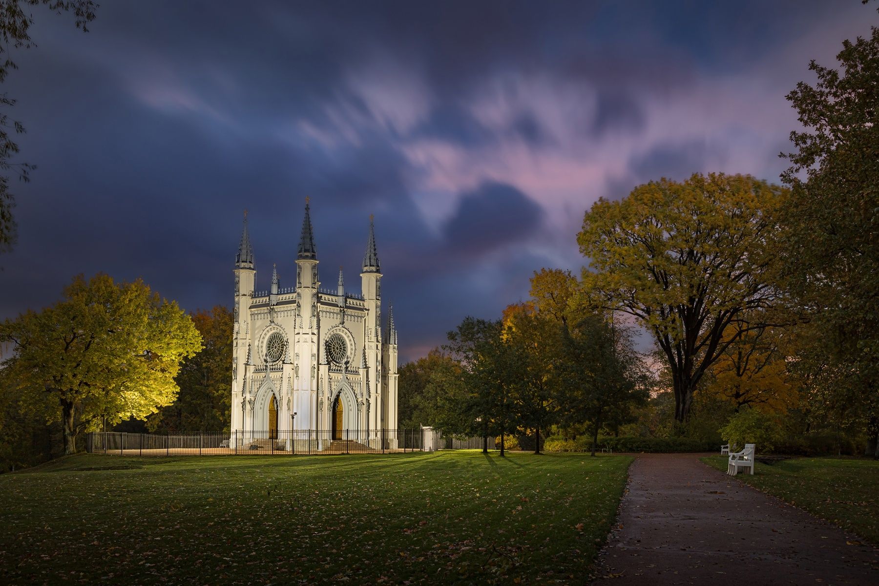 капелла, вечер, осень, парк, Вячеслав Мельников
