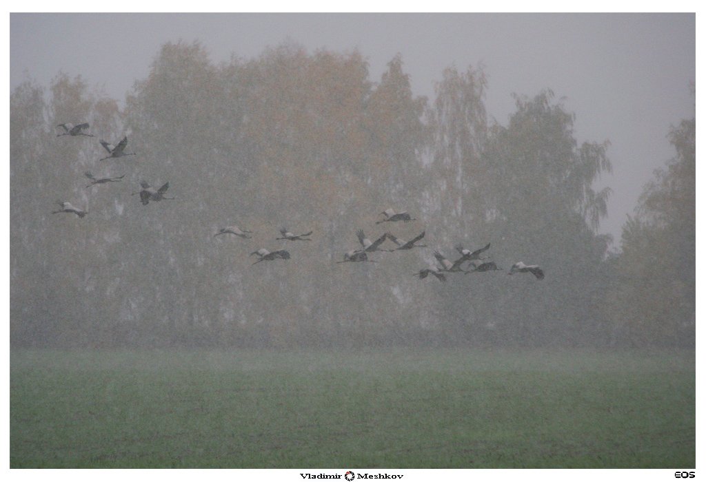 Уже снимаю прилетевший журавлей почти две недели. Жаль, что в районе Окского заповедника их будет в этом году меньше - местный колхоз разорился и не будет сеять кукурузу и рожь...