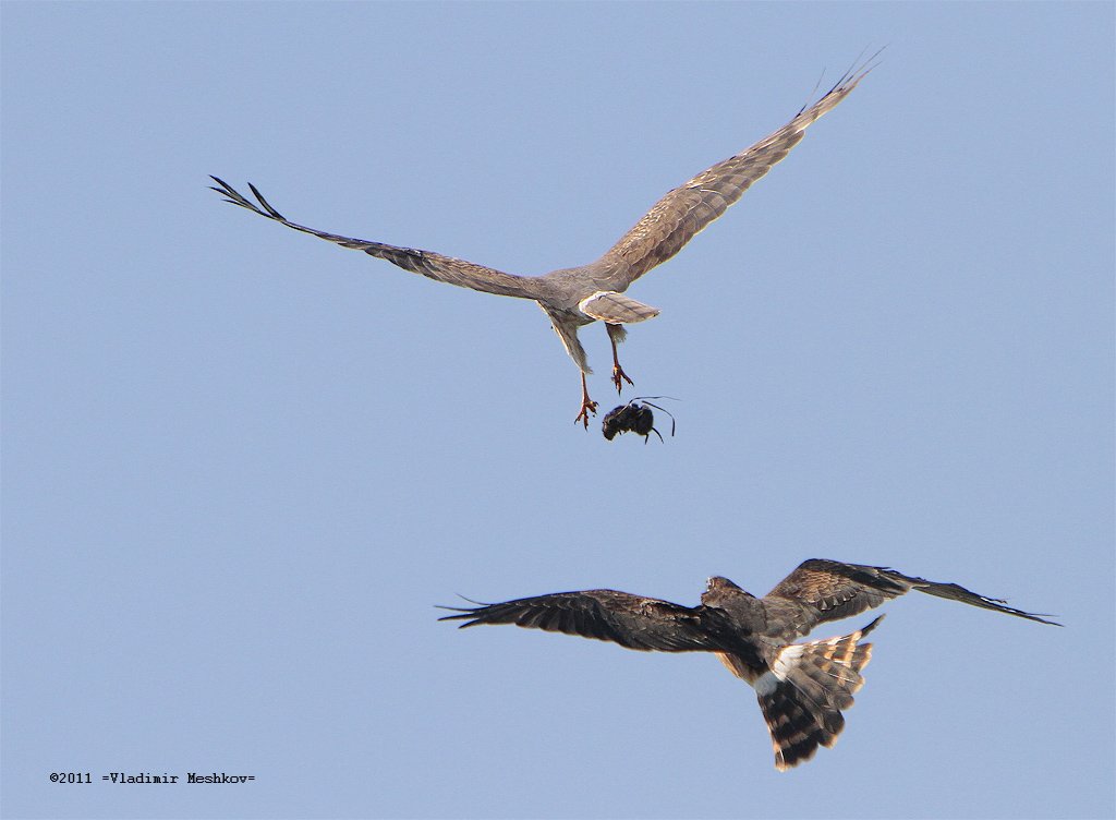 своего птенца в небе.