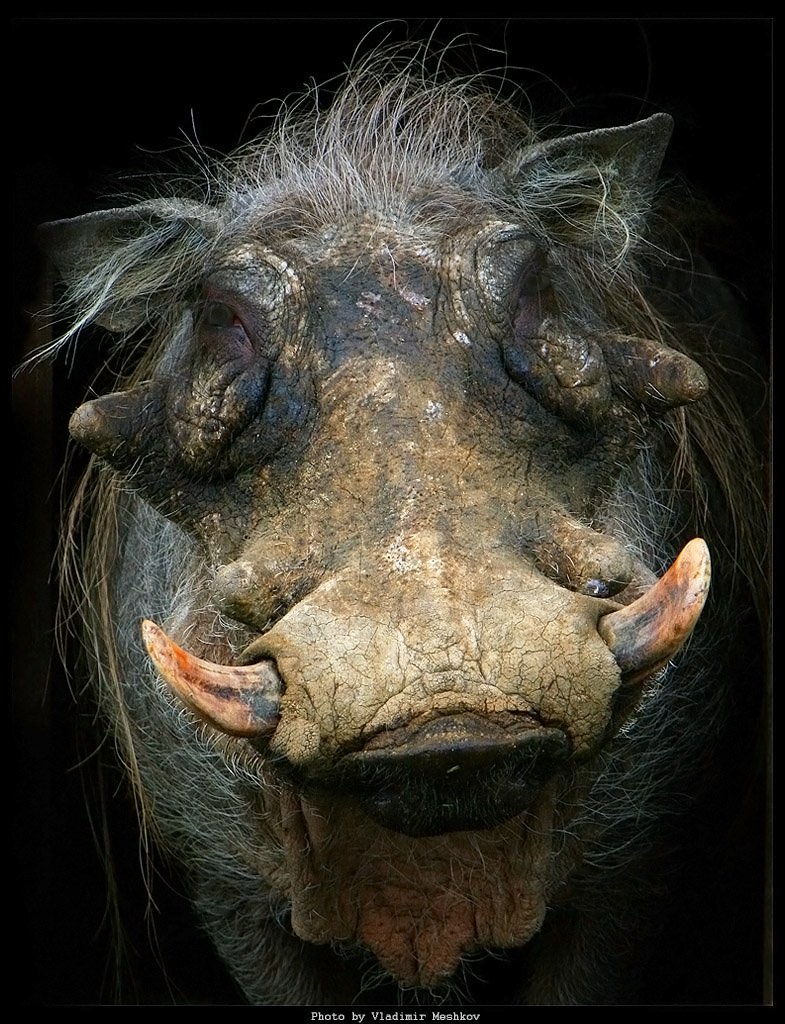 Он получил свое название за огромные кожные бородавки на морде. Они располагаются под глазами,