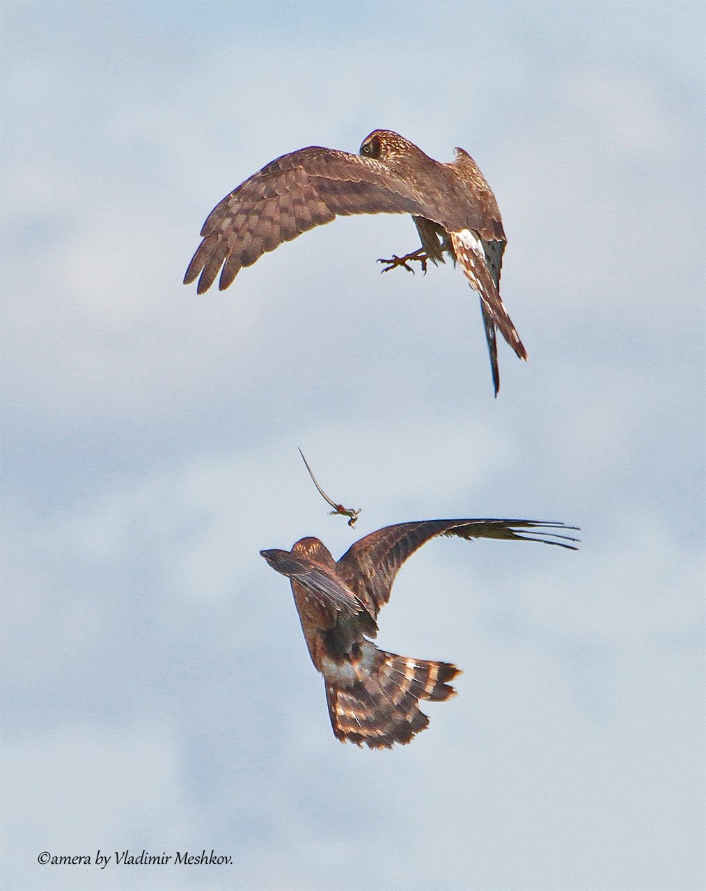 Луговые луни, самка и молодой лунь.