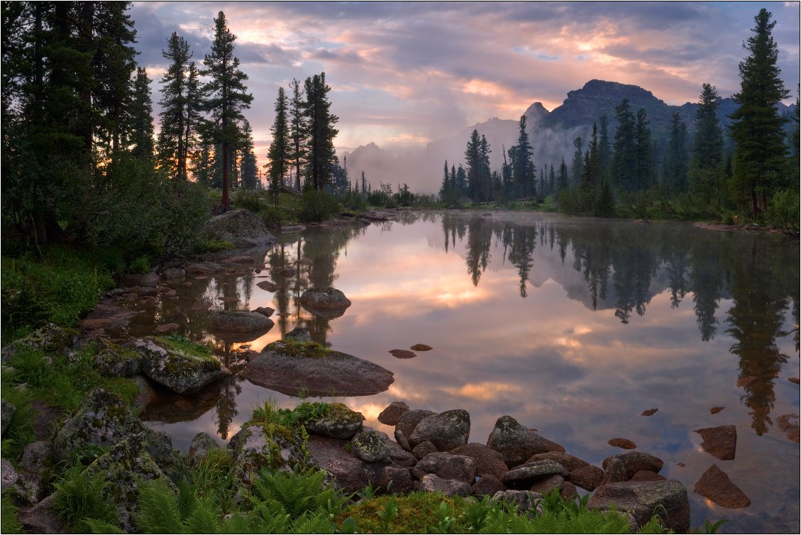 Спасибо! Само-собой ищу в первую очередь вид, жду погоды, красивого света и т.д. А дальше начинается. Динамический диапазон на самом деле зверский в этой сцене. Одним кадром если снять - либо небо; либо ели на белом. Обычно для менее контрастных видов достаточно потянуть из рава, а тут пришлось снимать с брекингом (темный +светлый кадр) и накладывать один на другой с помощью масок. ХДРные программы в свое время пробовал - не понравились. Что то не то они делают. Поэтому расширяюю ДД вручную. Естественно все снято со штатива. И еще, 90% фото - это панорамы, даже там где можно снять одним кадром, если есть возможность снимаю 4-6 на большем фокусном. Это позволяет увеличить детализацию. Иногда панорамы в 3-4 ряда. Эта например панорама 7х2 т.е. 14 фрагментов. Каждый фрагмент с короткой и длинной выдержкой. Т.е. на этот вид ушло около 30 кадров =) Кроме того, чем больше фрагментов в панораме, тем больше можно вытянуть из рава каждого кадра. (почти до 50% в тенях) потом собрать из этих десятков зверски большую панораму а потм уменьшить ее в разы до размеров обыкновенного одного кадра. Все шумы уйдут! Только комп помощнее нужно, а то зависания бывают на неск. часов. Но еслии ДД велик, то лучше брекинг... Из рава конвертация только в tiff и все работа только с tiff. А камера обычная canon 40D и 24-70 2.8L Диафрагм. число 16-18 ставлю обычно.