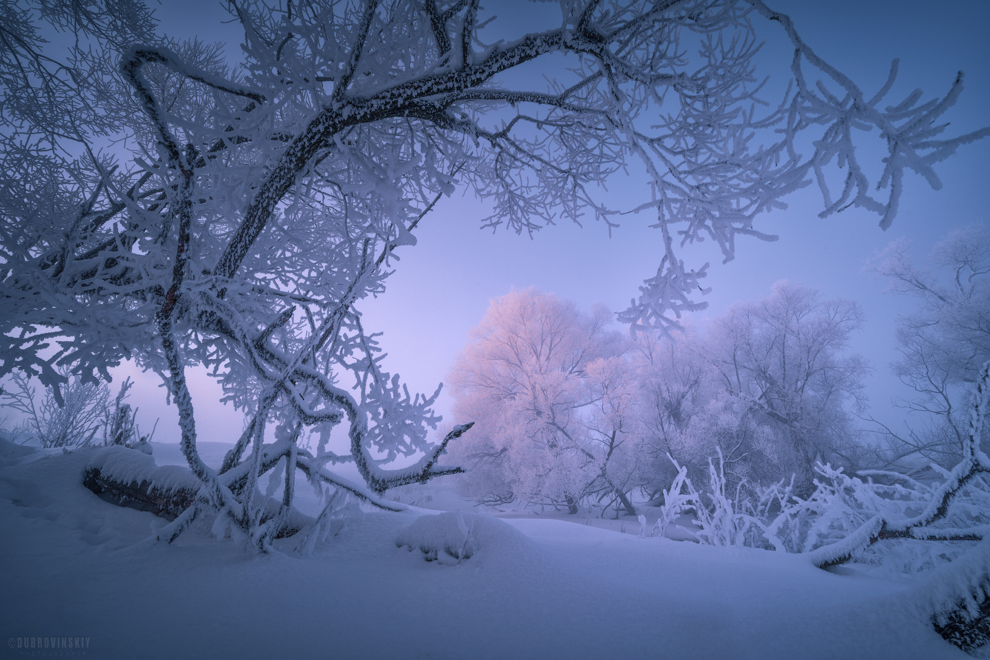 девевья, снег, иней, рассвет, мороз, зима, Дубровинский Михаил
