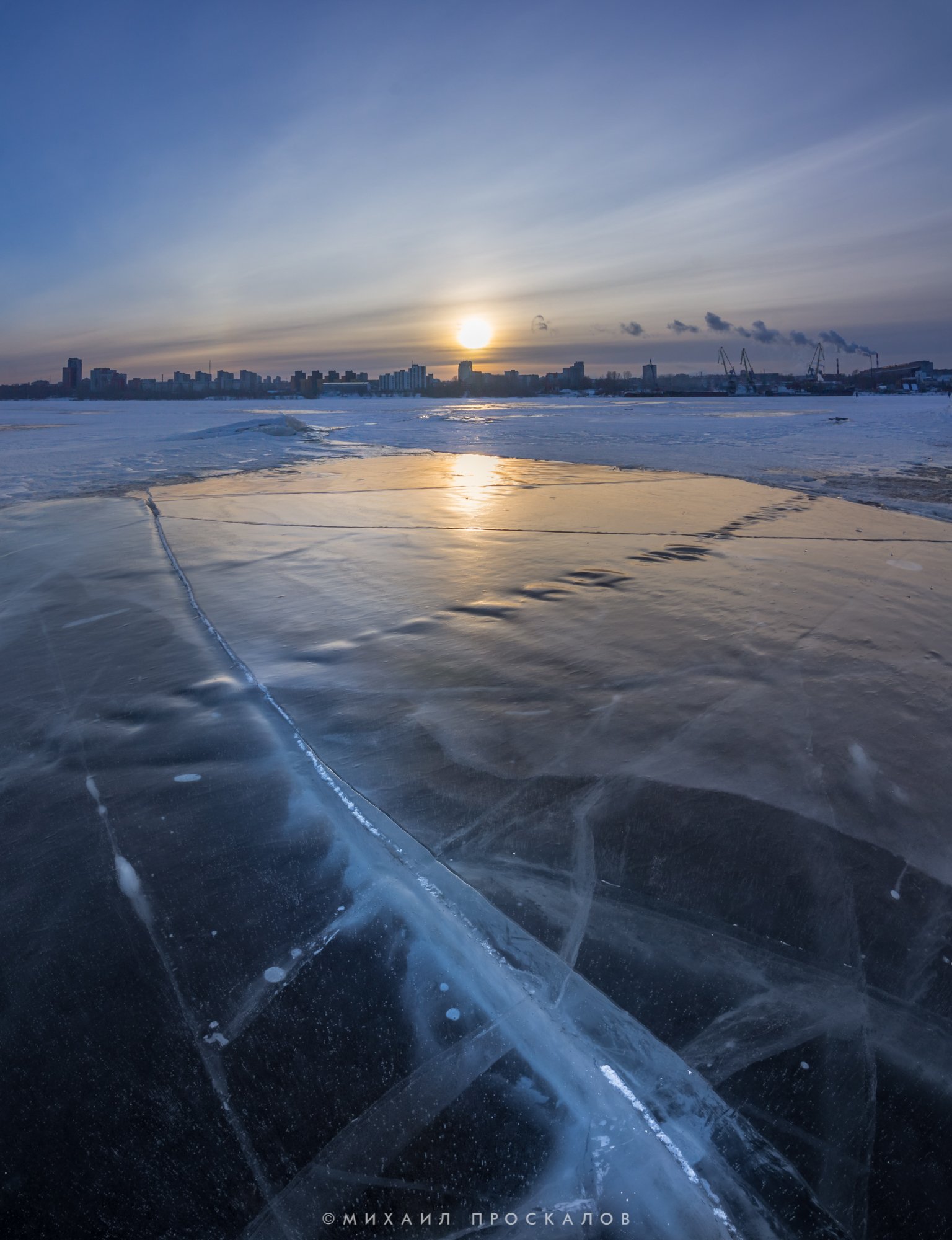 Трещина, солнце, закат, город, панорама, карелия, Михаил Проскалов