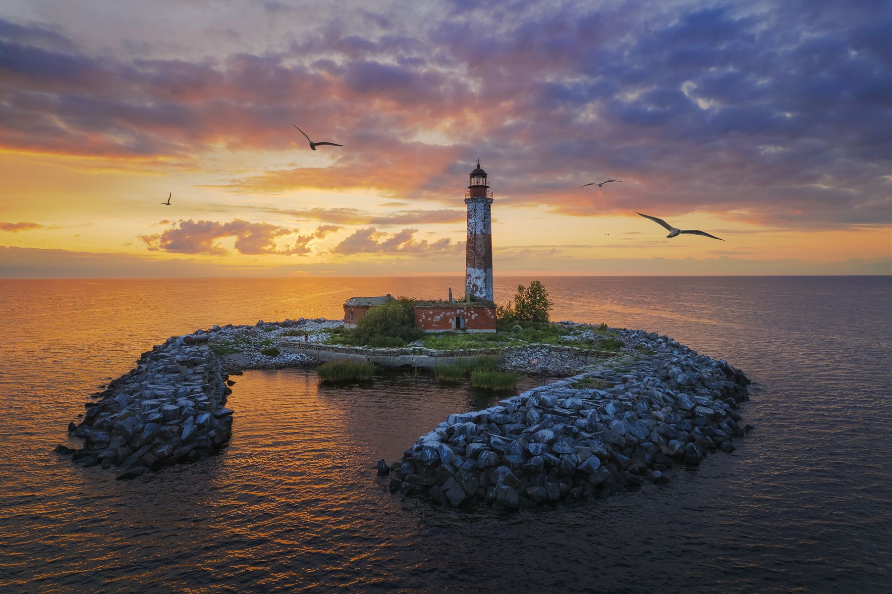 Ладога, природа, закат, маяк, Михаил Проскалов