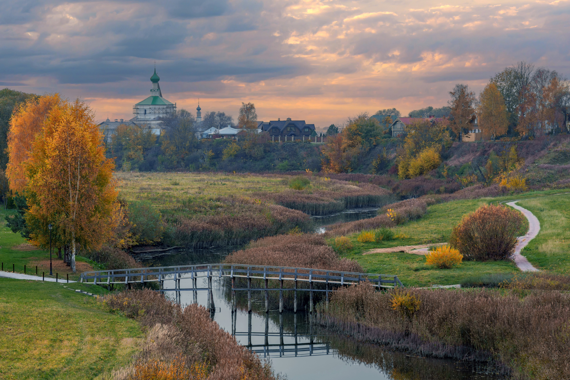 В вечерней дымке храм стоит,