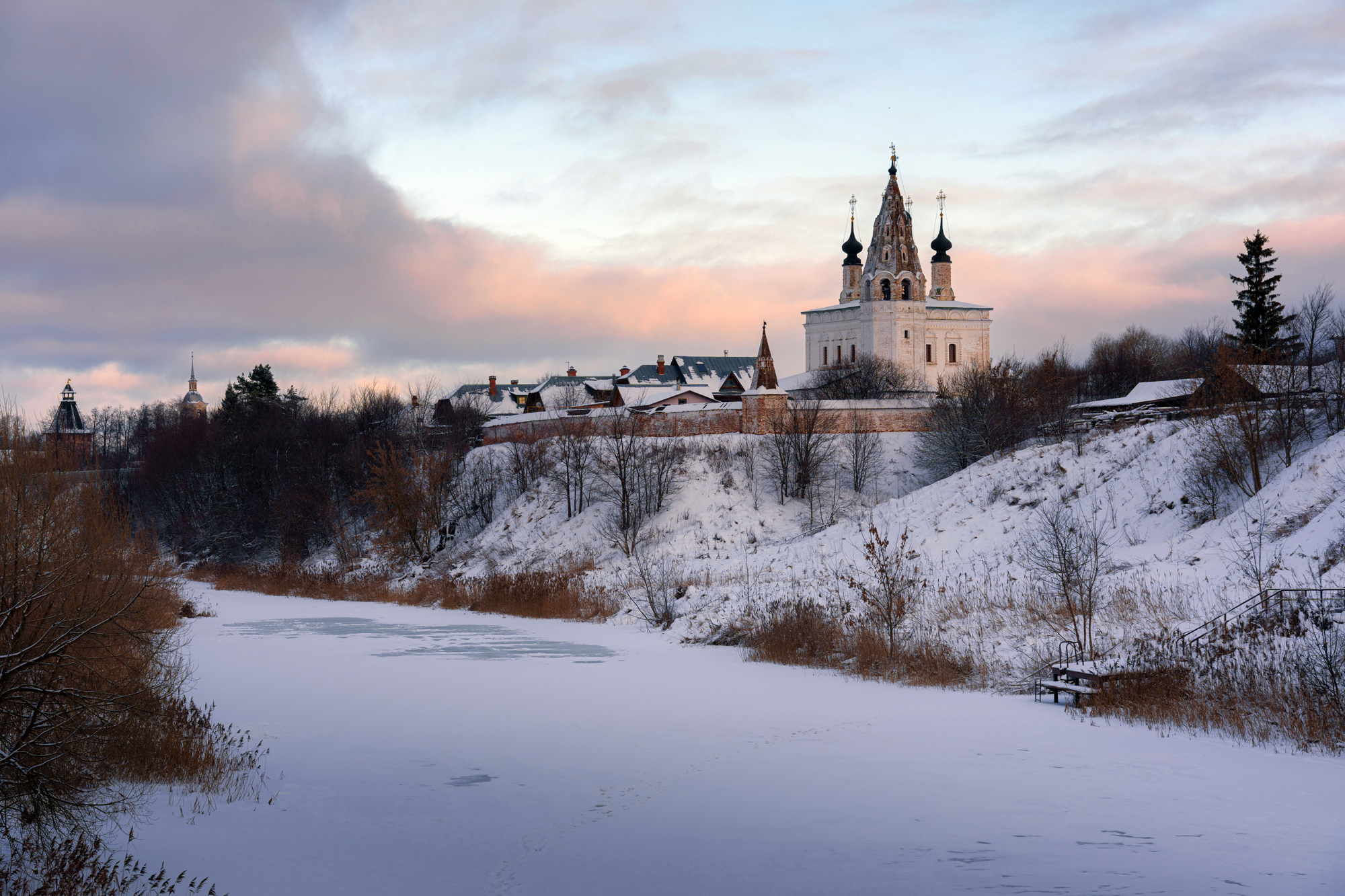 суздаль, александровский монастырь, закат, зима, река, Добродий Михаил