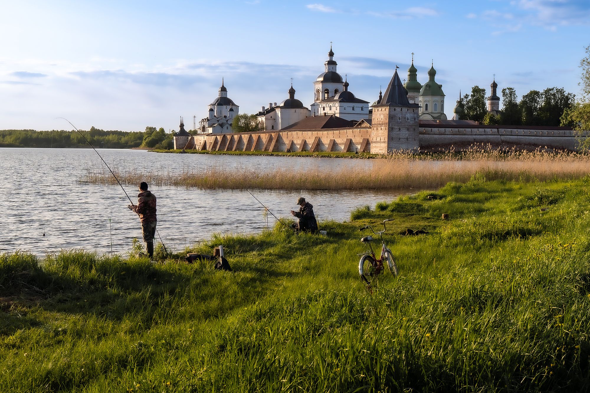 рыбаки, озеро, закат, монастырь, Добродий Михаил