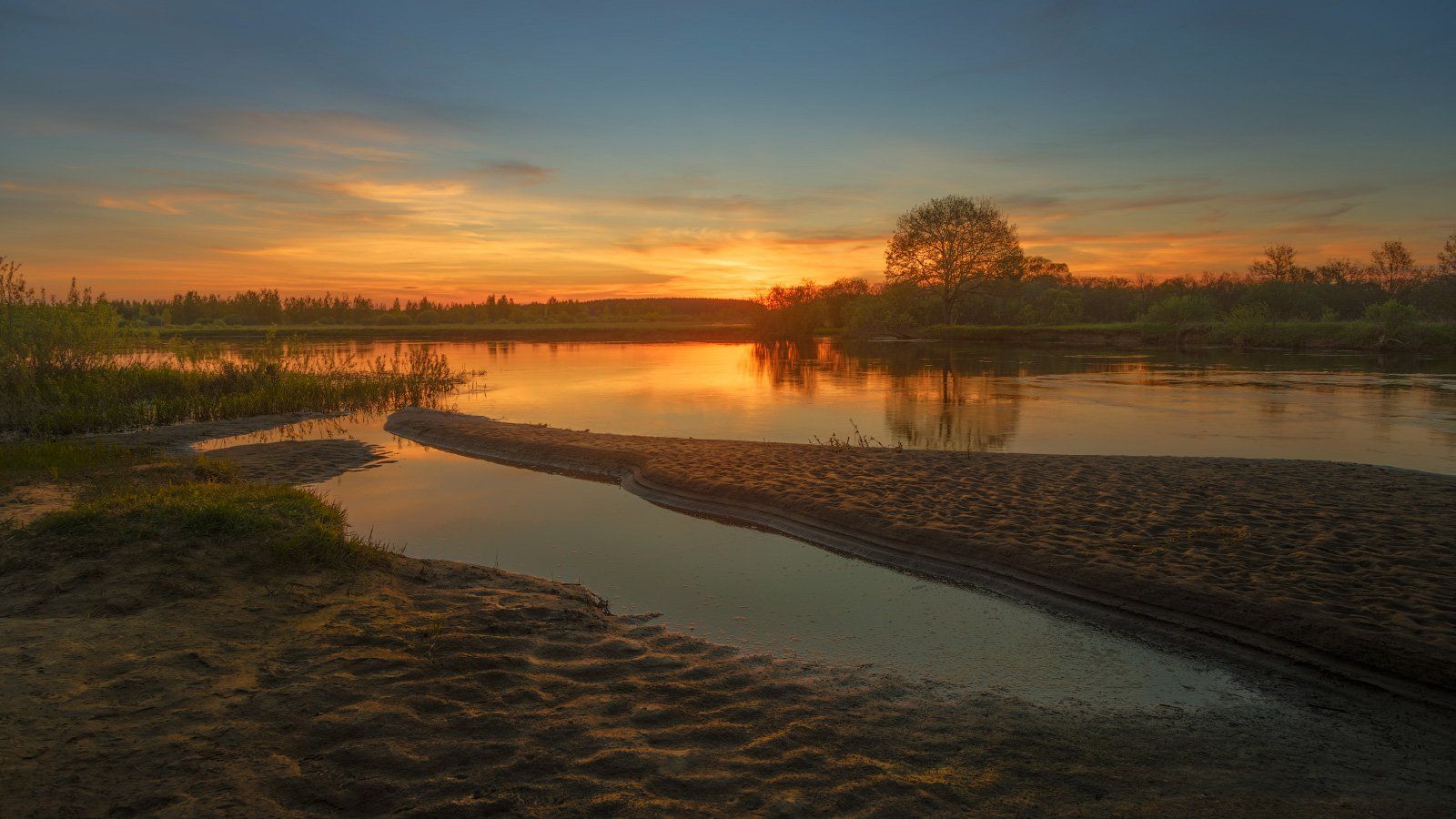 Березина, река, берега, закат, весна, Михаил Кушнер