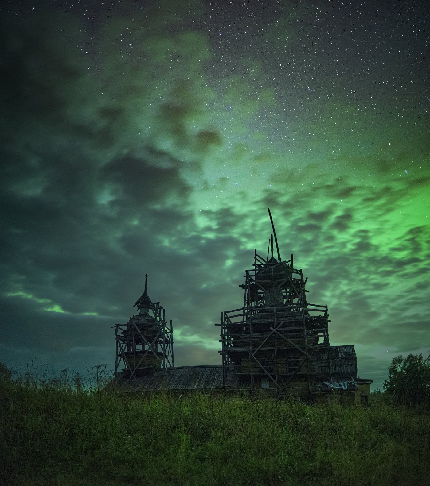северное сияние, русский север, ночь, астрофото, звезды, ночное небо, деревянное зодчество, aurora borealis, Михаил Карпов