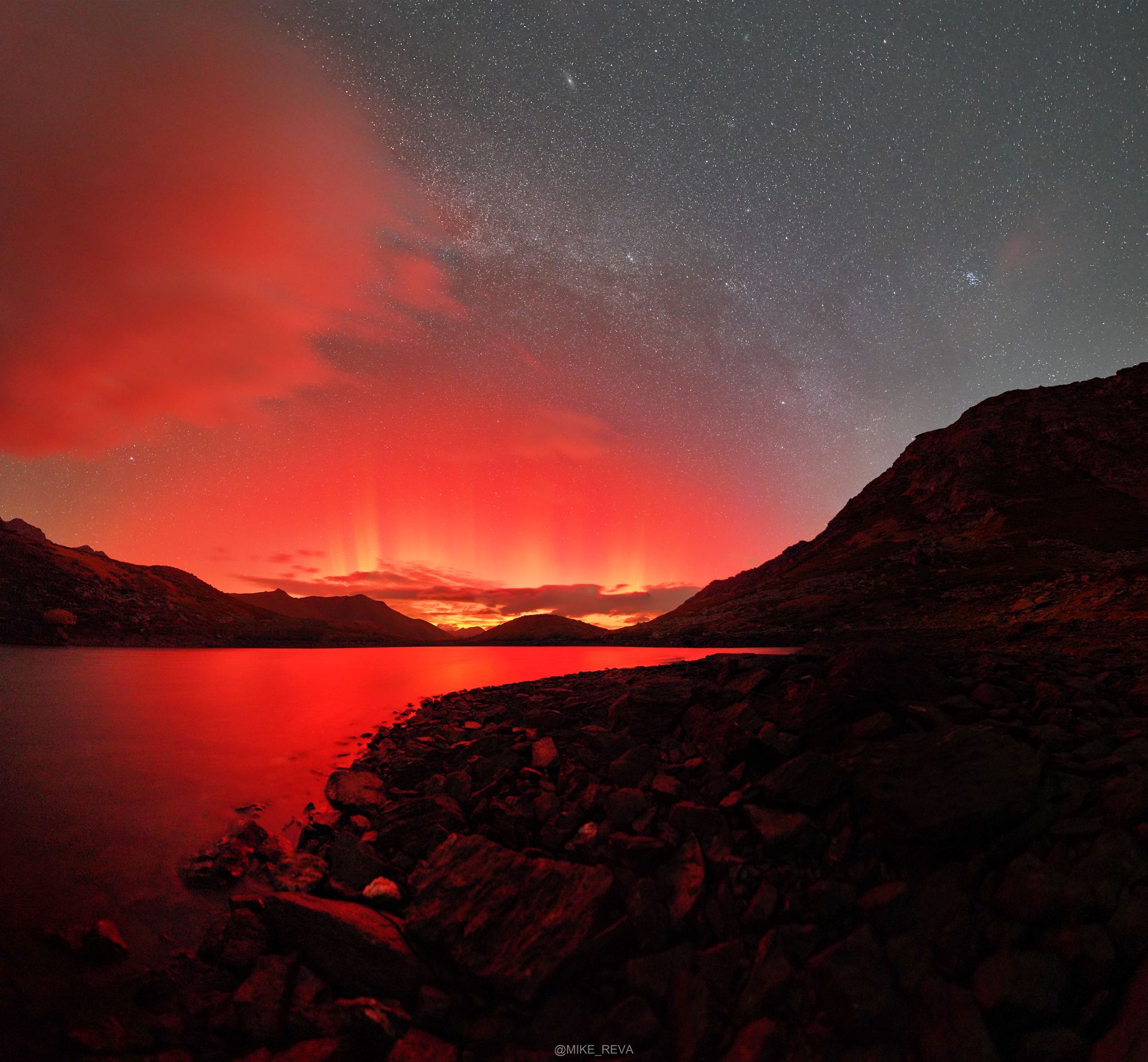 И тем не менее мысль о том, что шанс есть не давала просто расслабиться и заснуть. Наконец, около 23:00 проверка показала, что часть облаков отступила, а северная часть неба вовсю полыхает ярко красным до высоты градусов в 35.