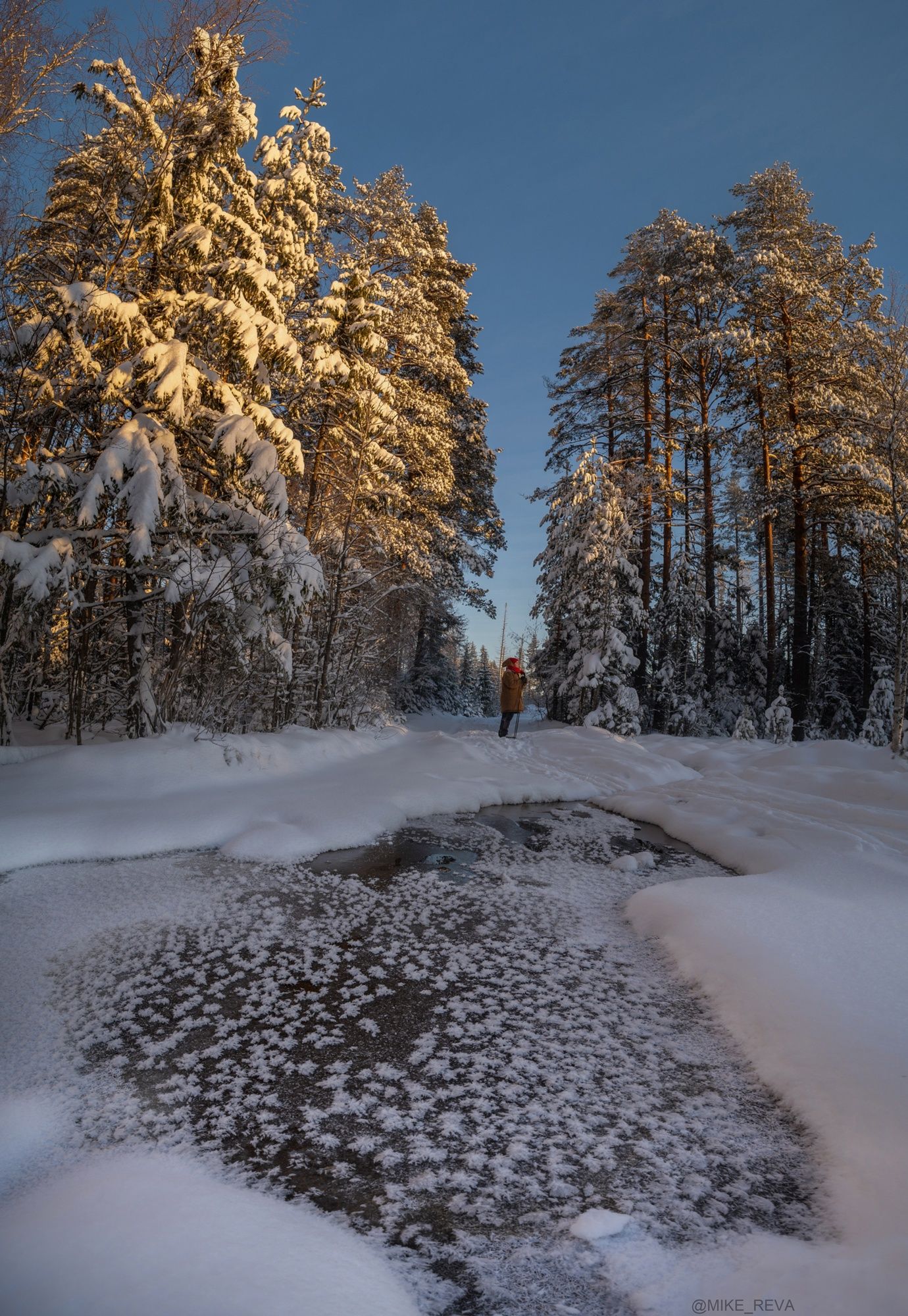 Мы успели открыть лыжный сезон, лес был покрыт густыми снежными шапками, а кое где можно было найти и красивые ледовые цветы, которые распустились после ночи, когда температура опускалась почти до 20 градусов.