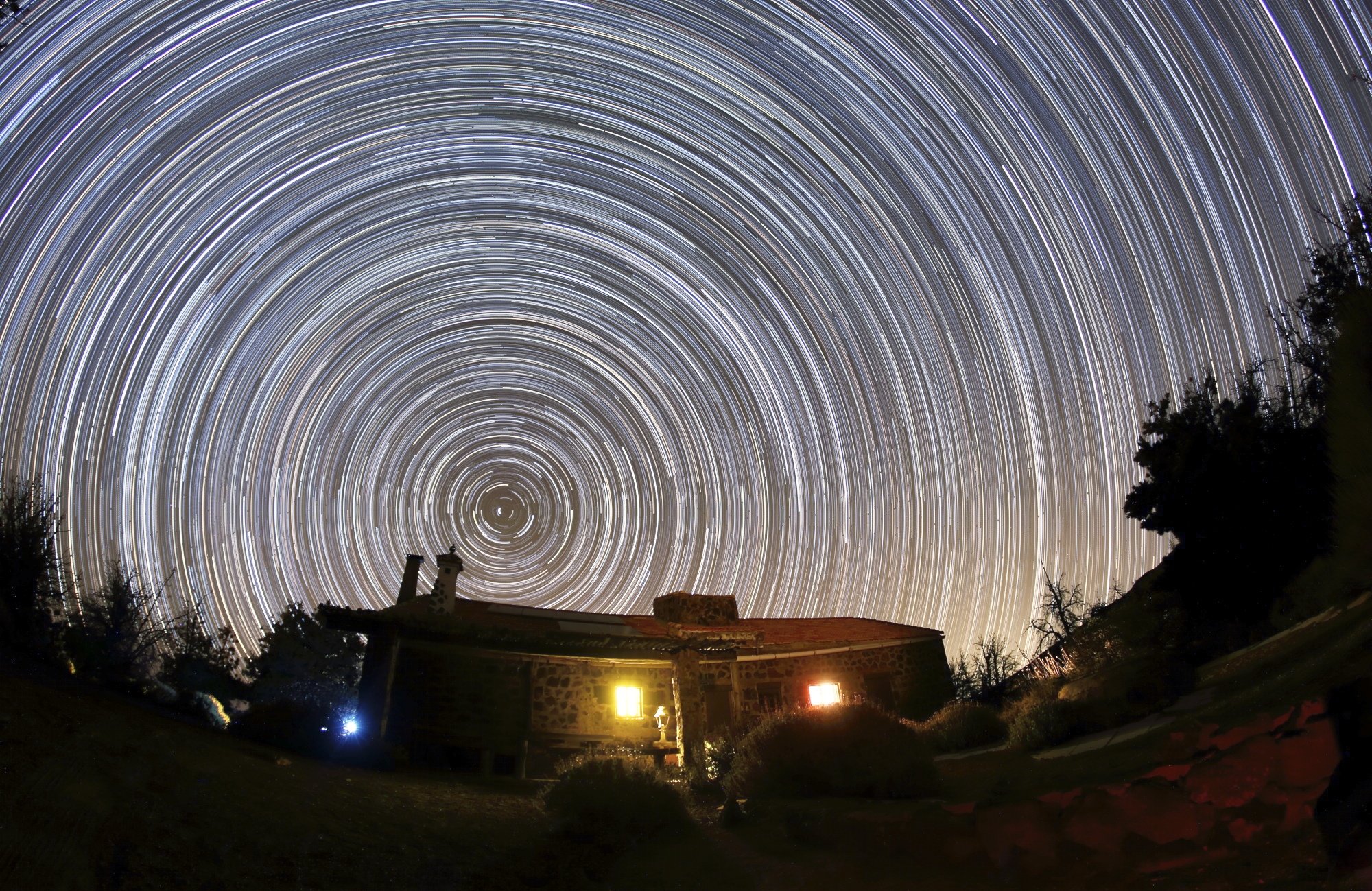Звездные треки над хижиной, ставшей на время поездки нашей базой расположенной на высоте в 2000+ метров в национальном парке Тейде.