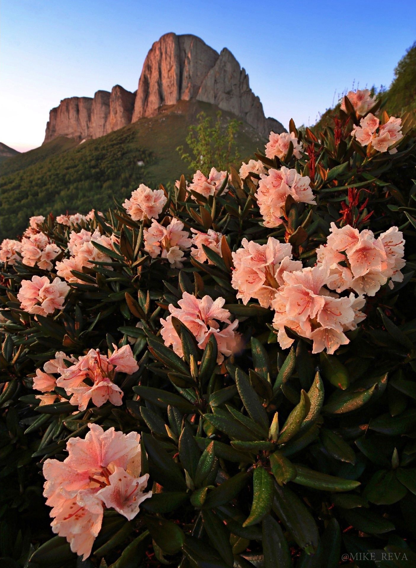 Проведя всю ночь за съемками ночного неба мы решили, что раз уже светает, то ложиться спать уже нет смысла и отправились встречать рассвет в заросли прекрасных розовых рододендронов у подножия Восточного Ачешбока.