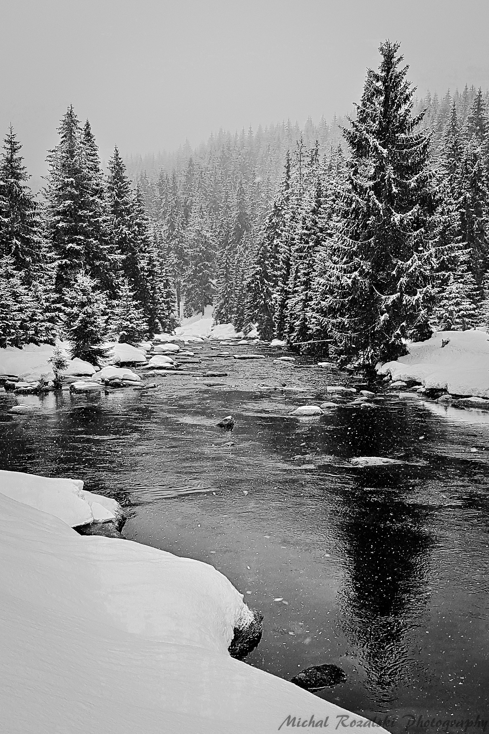 winter, ,season, ,blackandwhite, ,snow, ,landscape, ,trees, ,stream, ,photography, Michal Rozalski