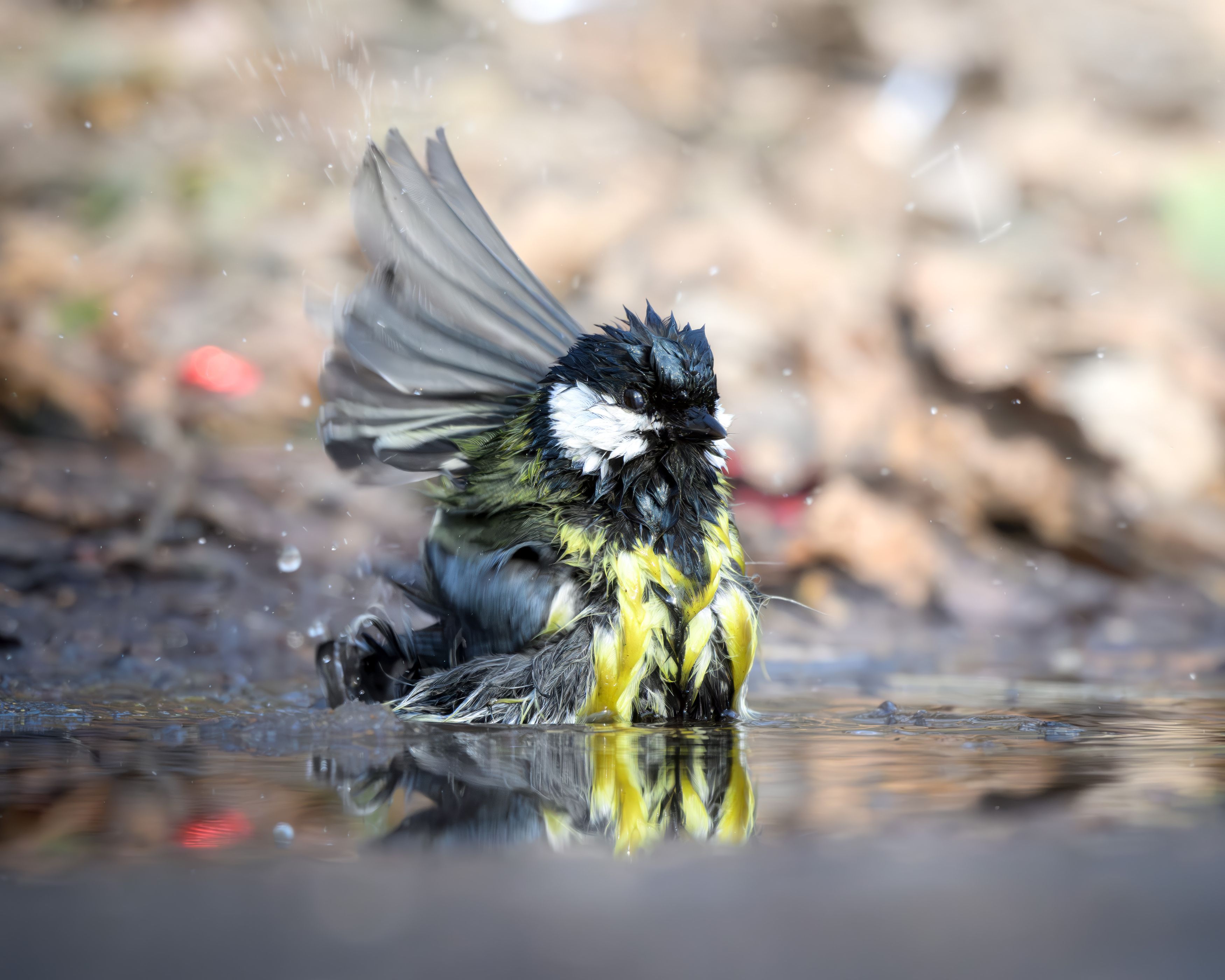болшая синица, птицы, Москва, лес, природа, весна, вода, лужа, март, Михаил Ездаков