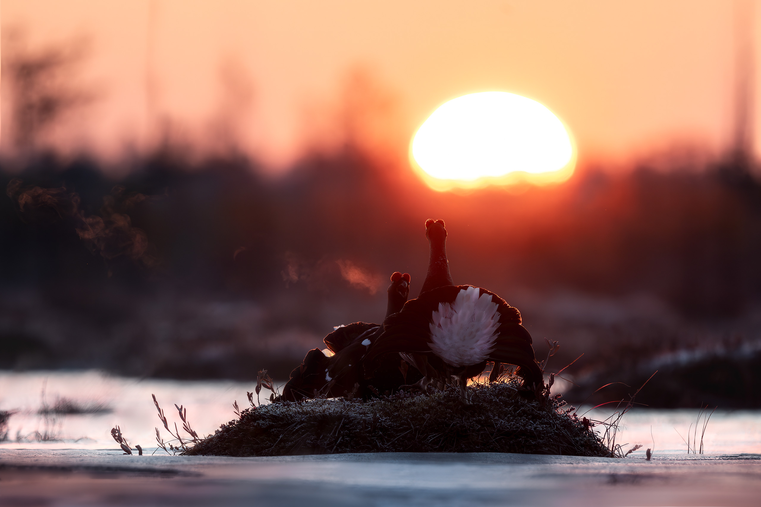 Тетерев, птицы, токование, лес, природа, фотоохота, утро, болото, заря, рассвет, солнце, Михаил Ездаков