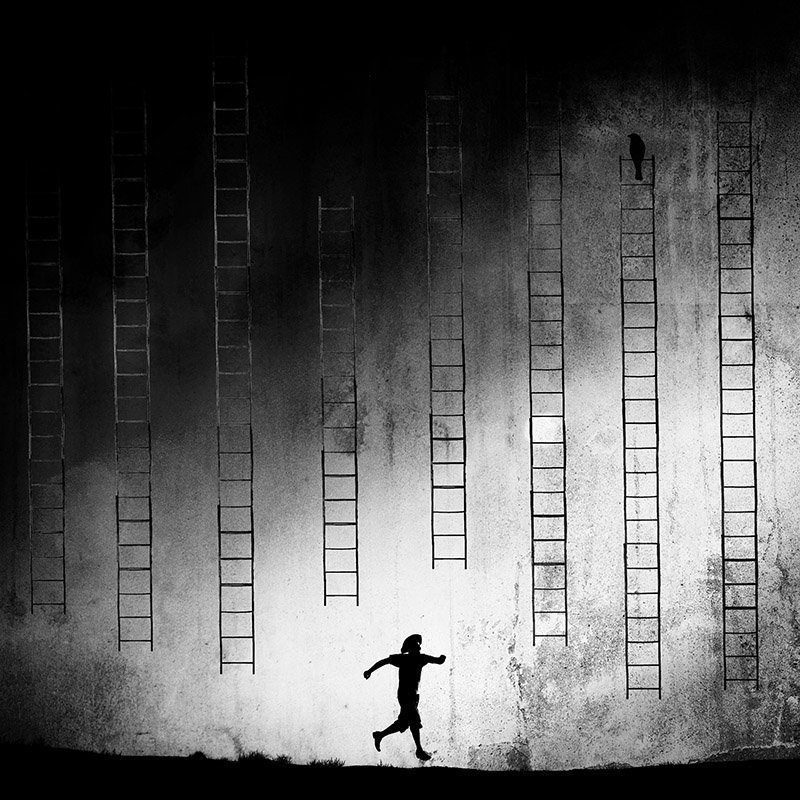 concept, conceptual, fine art, milad safabakhsh, ladder, bird, human, blackandwhite, milad safabakhsh