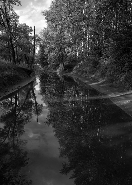река, деревья, облака, отражения, Мирошниченко Сергей
